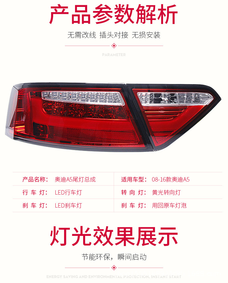 - Enhanced Aesthetics: Upgrade your Audi A5’s rear profile with these stylish LED tail lights. The innovative light guide design not only improves safety but also adds a sporty and sophisticated look to your car.
