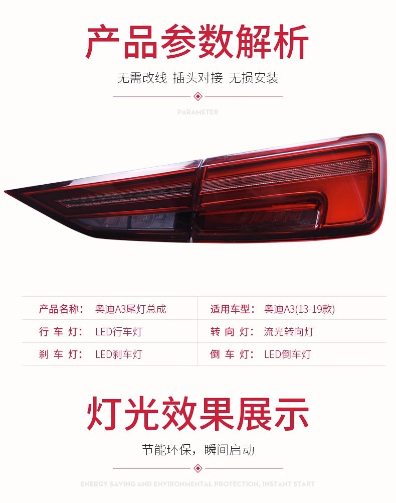 - Precise Fitment: Engineered specifically for Audi A3 (2013-2019) and S3 models, ensuring a perfect, seamless replacement for your vehicle’s original tail lights without modifications.