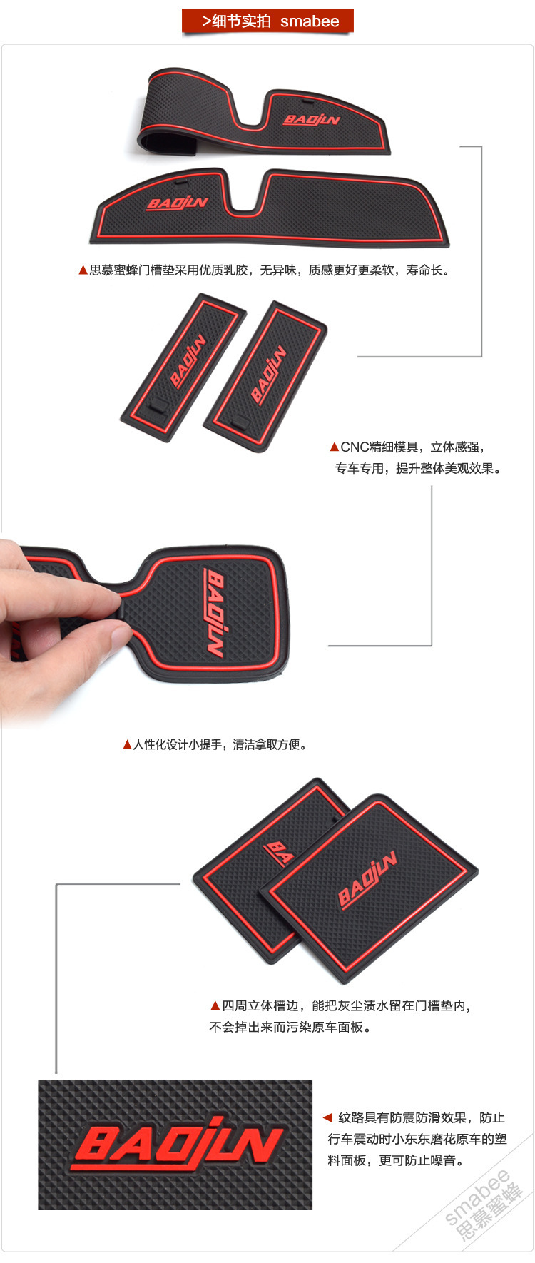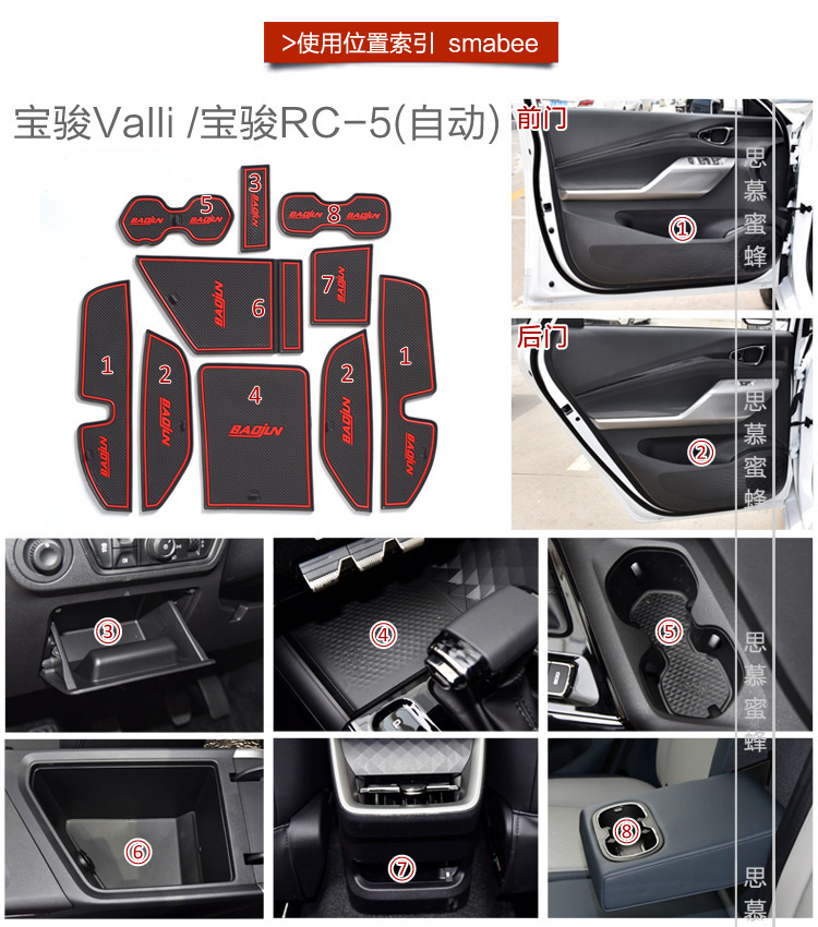 10pcs Rubber Anti-Slip Door Slot Mats Cup Holder Liners Center Console Armrest Decor for Baojun Valli RC-5 Auto