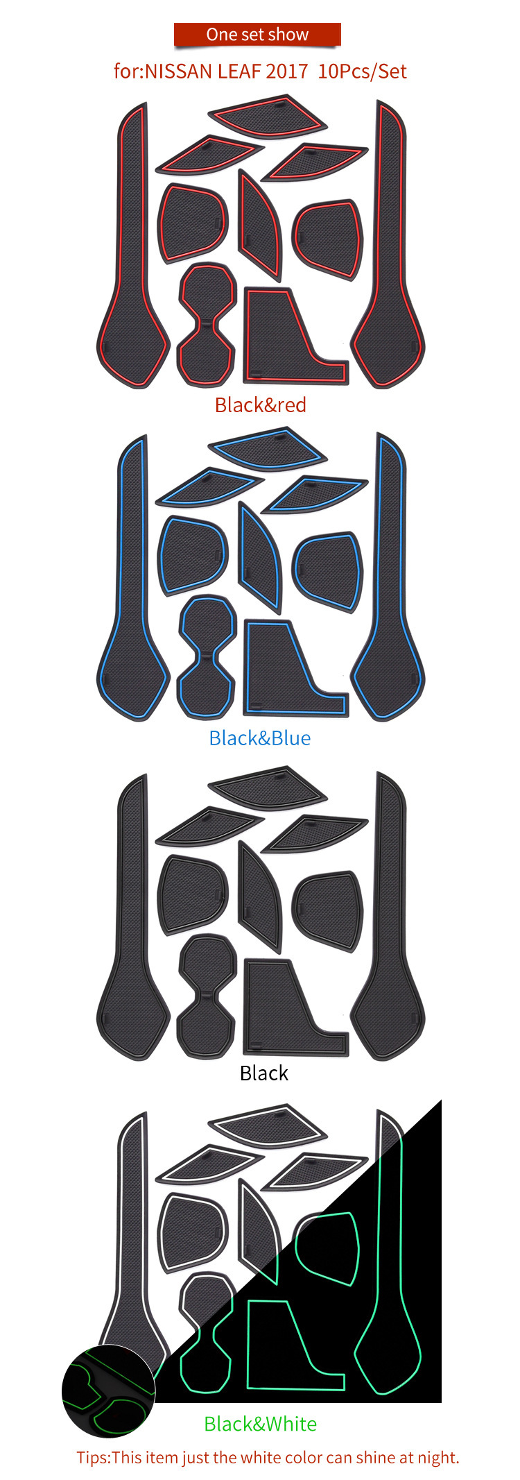 11pcs Black & Red Door Slot Mat Cup Holder Liners for Nissan LEAF