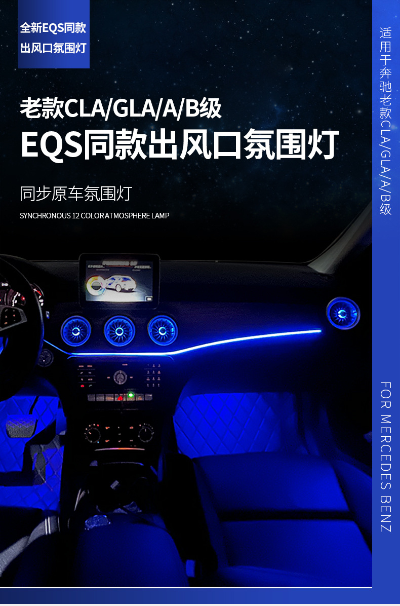 12-Color LED Air Vent Ambient Light Assembly for Mercedes-Benz W176 W246 W117 W156