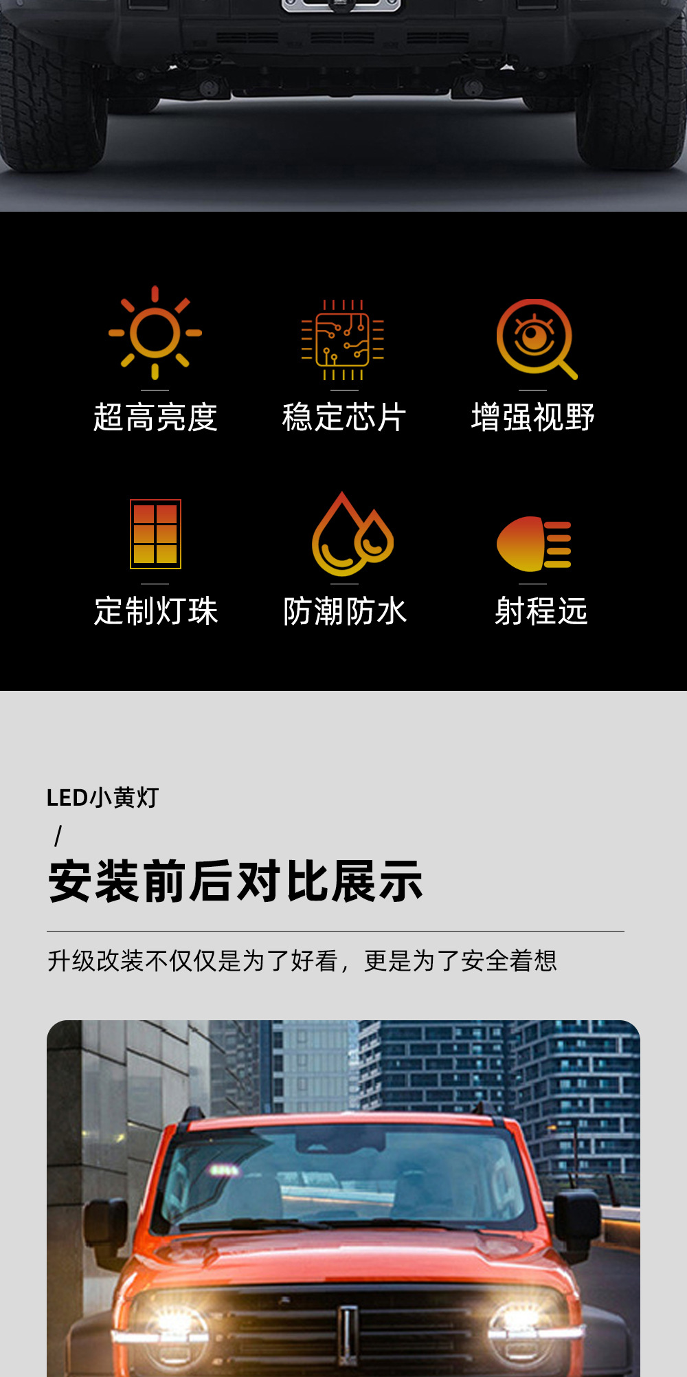 - Performance-Driven Design: Features high-brightness 12 LED (3030 SMD) amber lights, providing strong penetration and visibility for enhanced safety and a distinctive look.