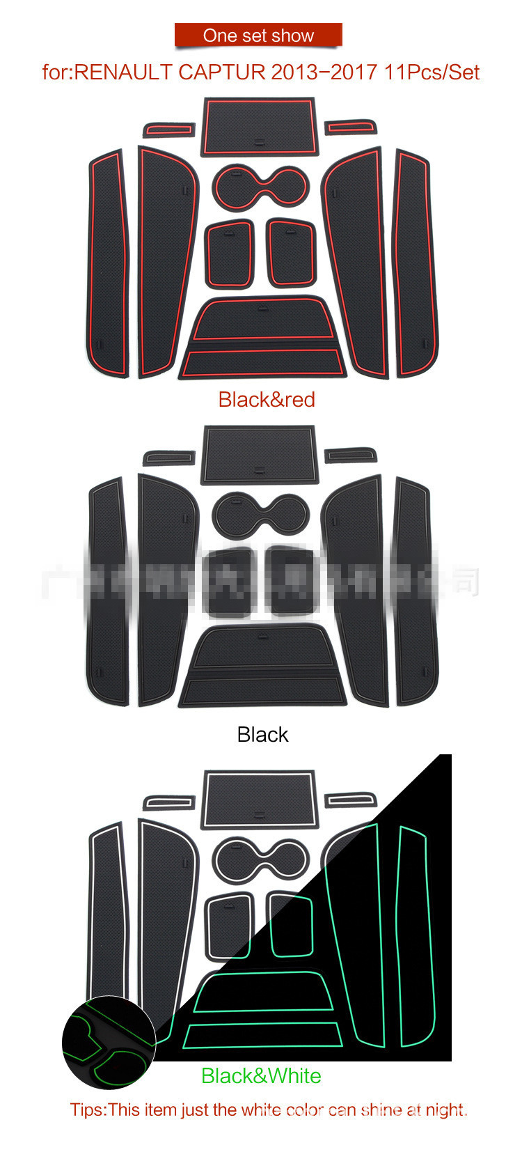 12Pcs Anti-Slip Cup Holder Door Slot Center Console Storage Mat for Renault Captur 2013-2017