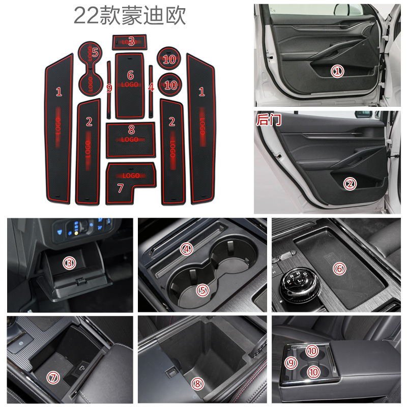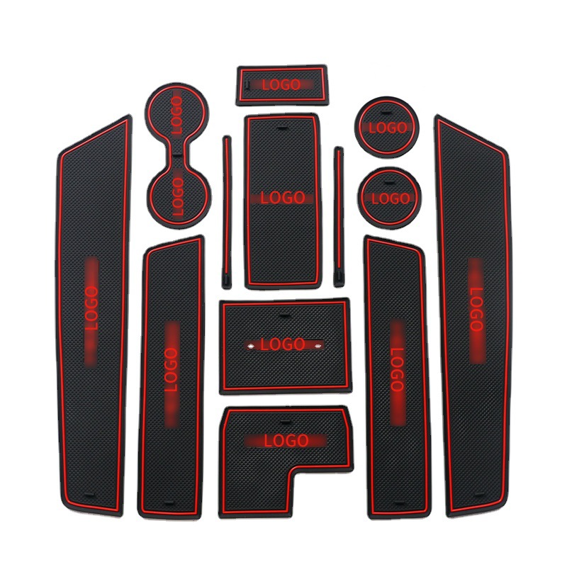 12Pcs Anti-Slip Dust Mats with Red Trim for Ford Mondeo 2022 Center Console Door Pad Armrest Storage Slot Dustproof