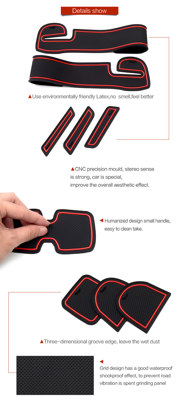 - Complete Package: Includes a full set of 12 black PVC door slot and cup holder anti-slip pads with red trim, exactly as pictured. Please verify fitment details before purchasing.