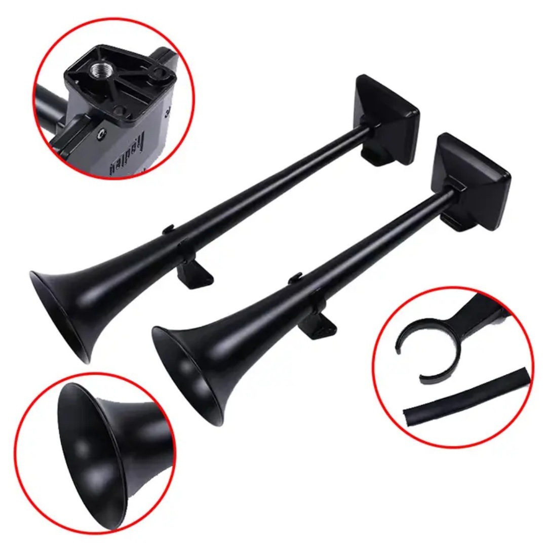 Celsius. - Enhanced Aesthetics & Style: Featuring a sleek silver or black finish with a 550mm square mouth base, this loud air horn adds a robust and professional appearance to your truck or car.