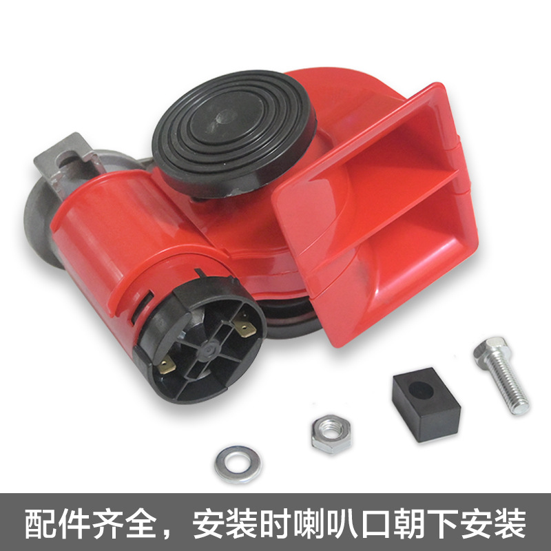 12V 24V Air Horn Snail Air Pump Horn with Red Square Mouth for Motorcycle Truck Modified Car Electric Car