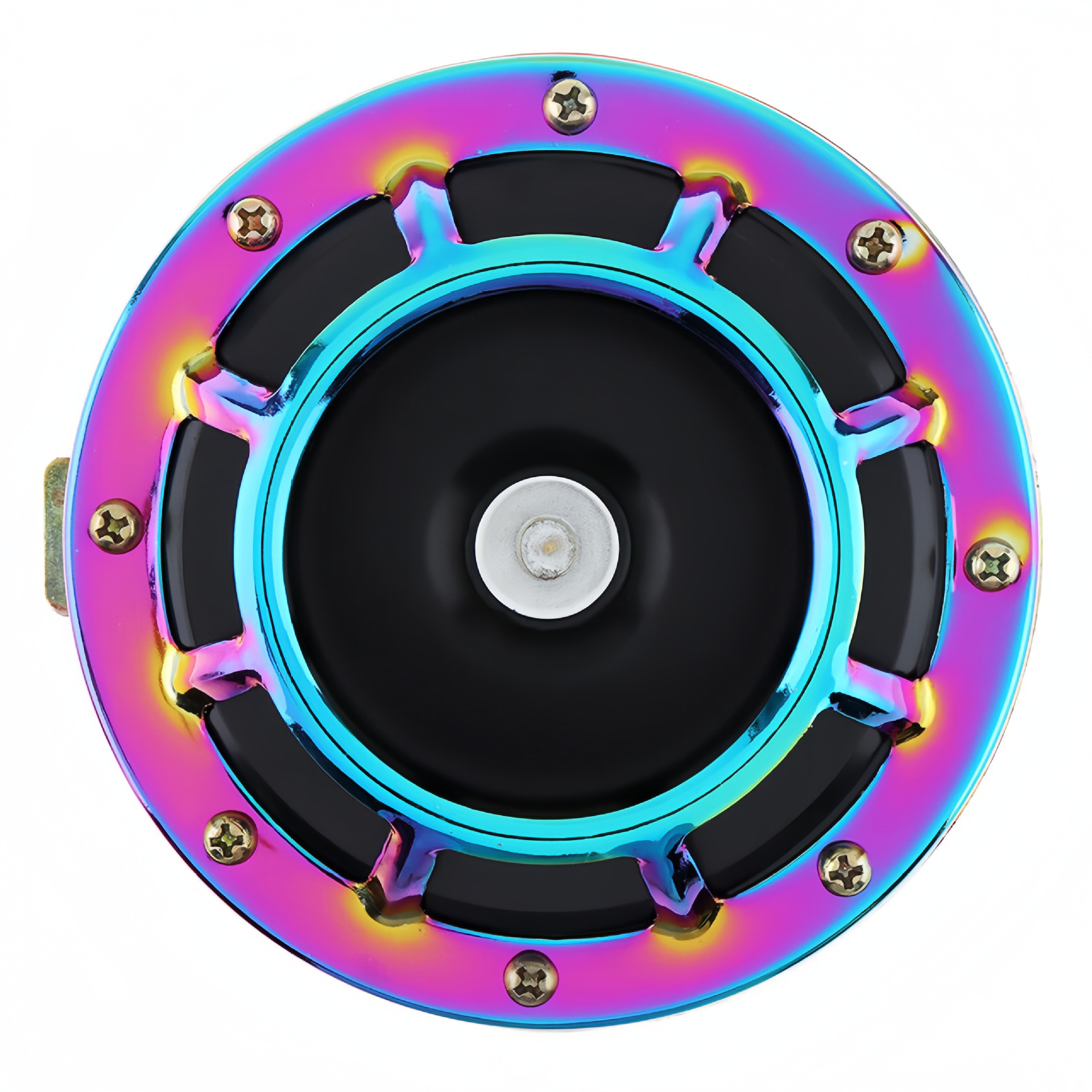 - High-Low Tone & Rainbow Finish: Experience clear and distinct high and low tones for enhanced safety, complemented by a unique, eye-catching rainbow colored finish that adds a touch of style to your vehicle.