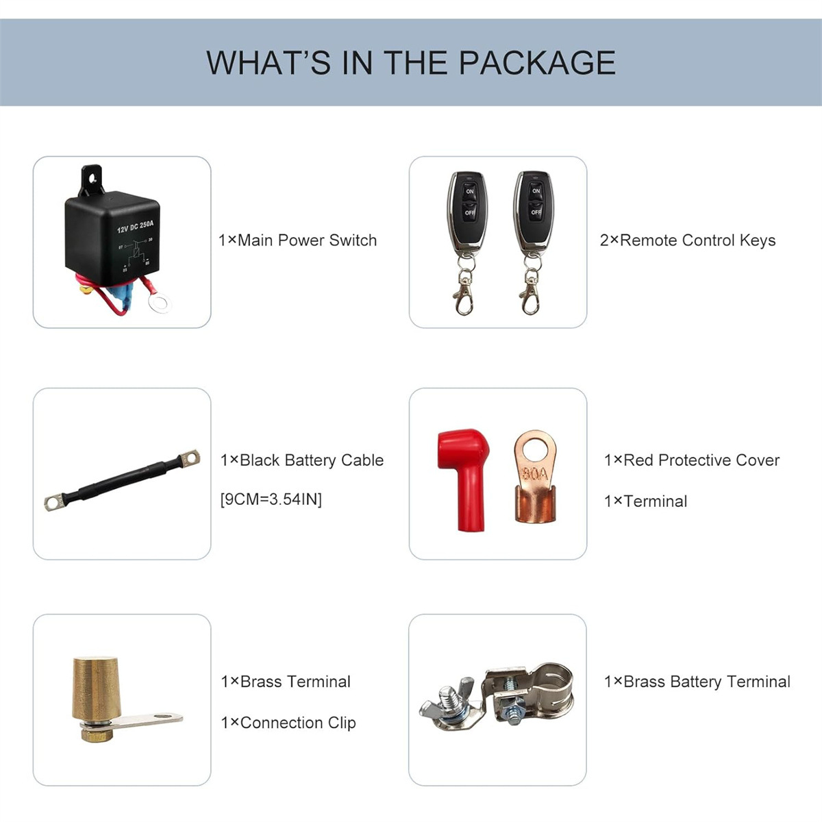 - Complete Power Protection Kit: Includes 1x Wireless Car Battery Disconnect Switch, providing a reliable solution for protecting your vehicle’s battery from unwanted discharge and extending its lifespan.