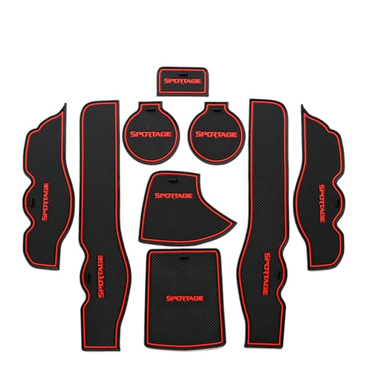 12pcs Anti-Slip Door Slot Mats Cup Holder Pads Red Trim for Kia Sportage 2007-2013