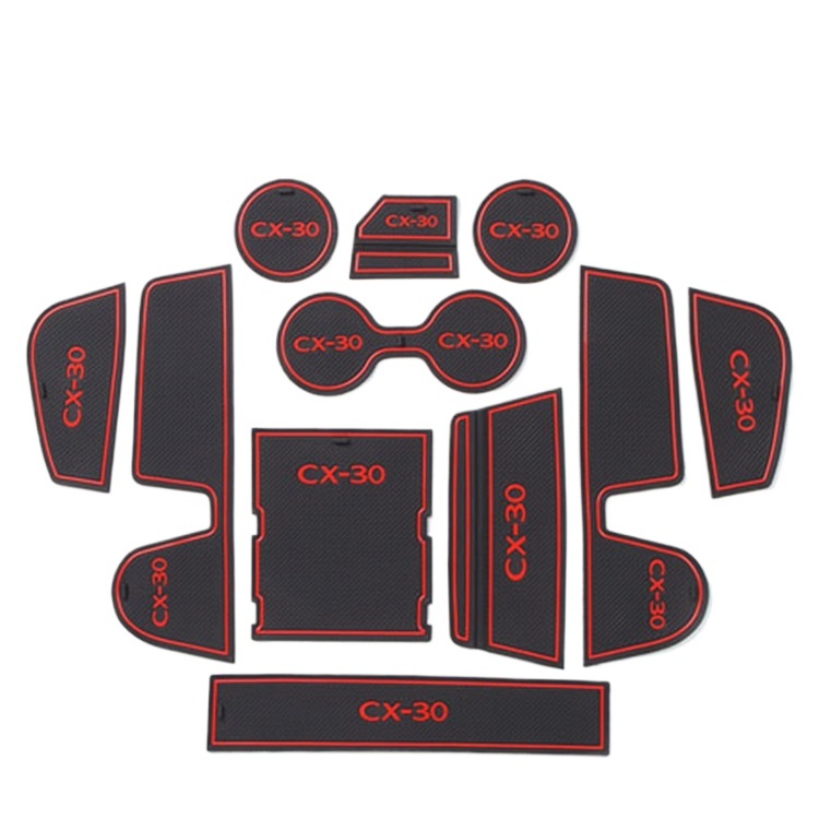 12pcs Red Trim Anti-Slip Door Slot Mats Non-Slip Cup Holder Pad Interior Liner Accessories for Mazda CX-30 2020