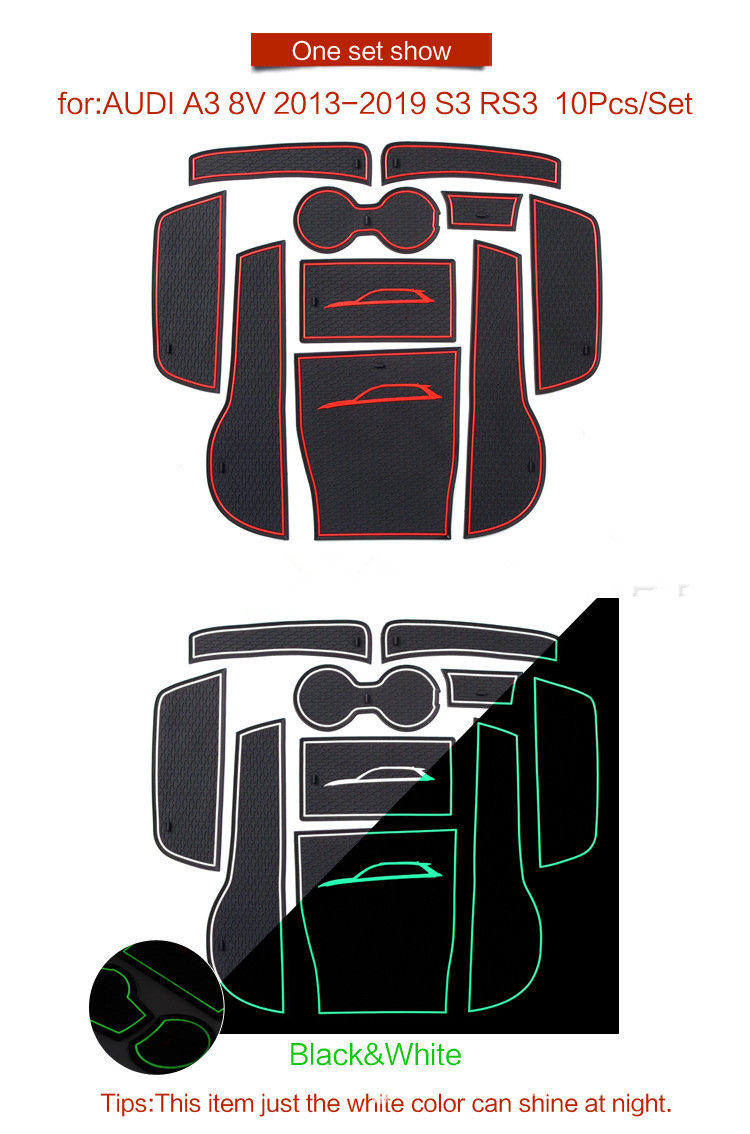 13PCS Anti-Dust Non-Slip Door Slot Cup Holder Mat Center Console Pad for Audi A3 2013-2019