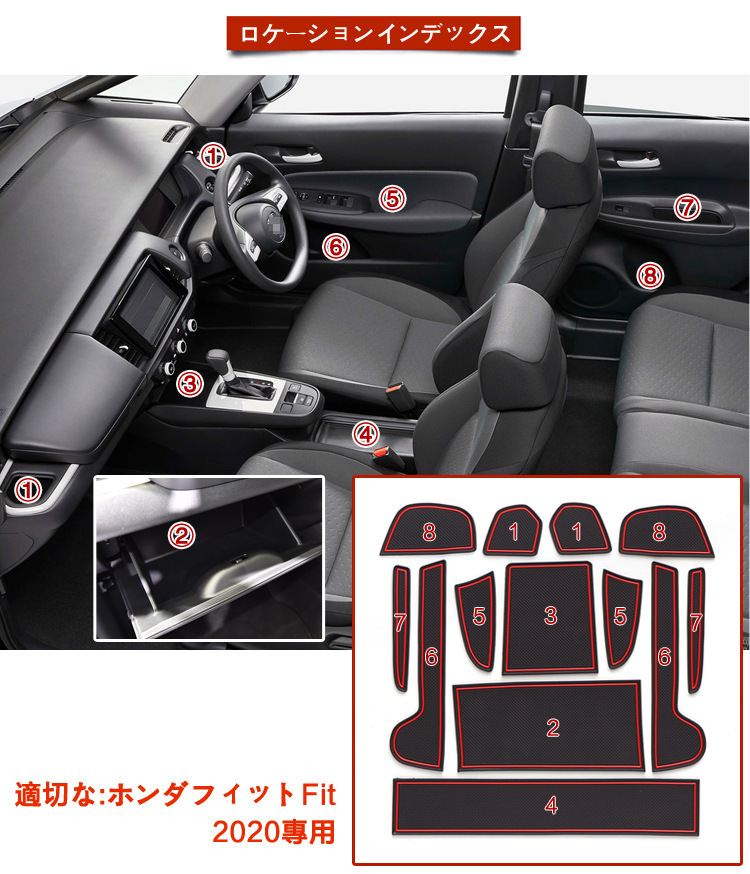 13PCS PVC Car Door Slot Mats Cup Holder Non-Slip Liners for Honda Fit Jazz 2020 2021 RHD