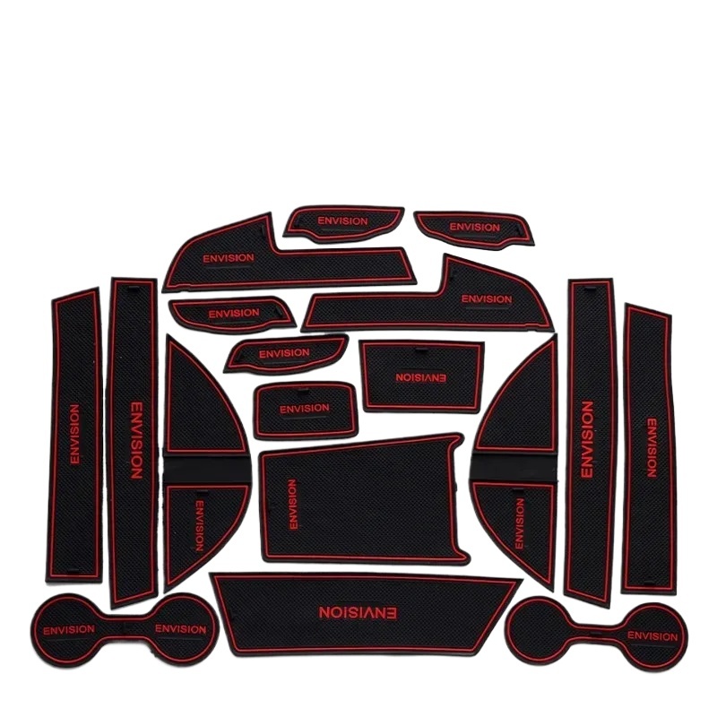 14-21pcs Car Door Slot Mat Cup Holder Liner with Red Trim for Buick Envision 2014-2021