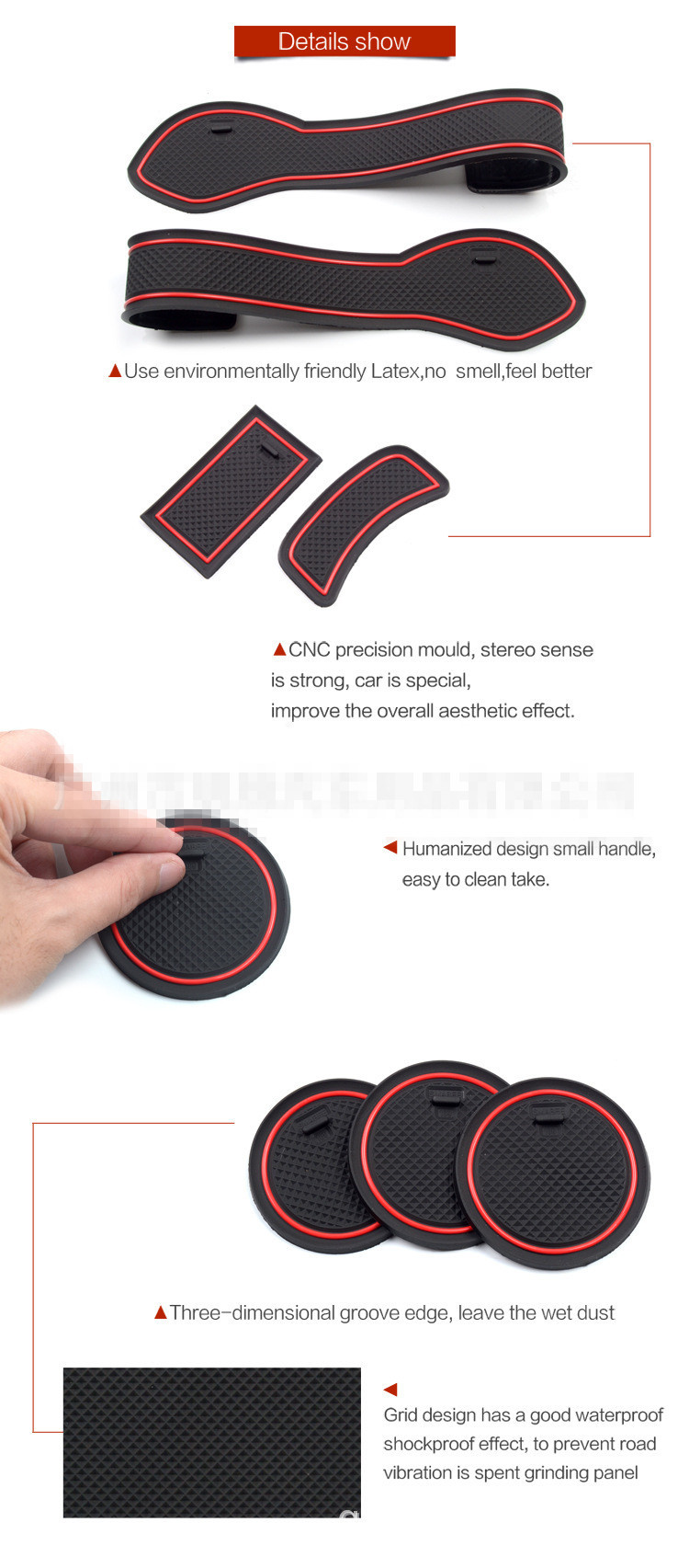 - Complete Package: Includes 15x door slot gate and cup holder mats, exactly as pictured in black with red trim. Please verify fitment details before purchasing.