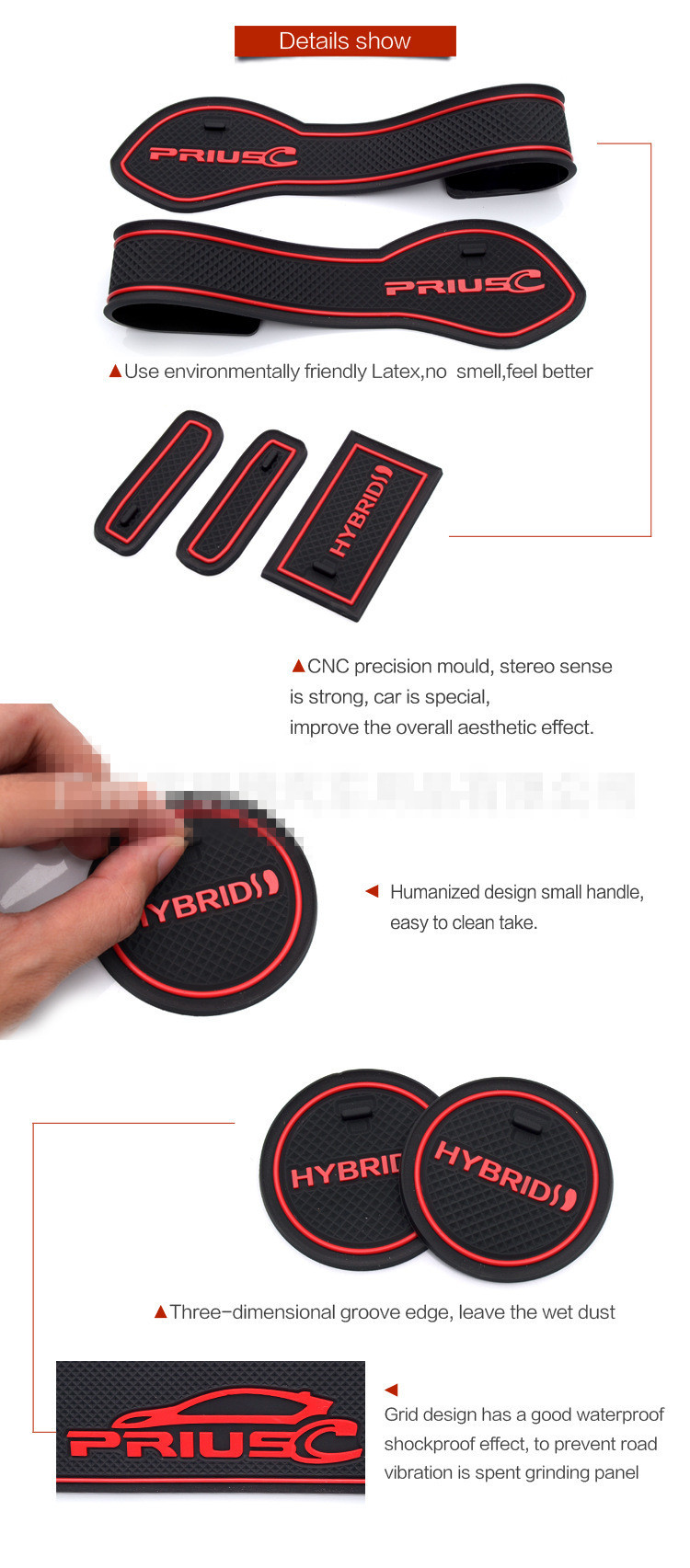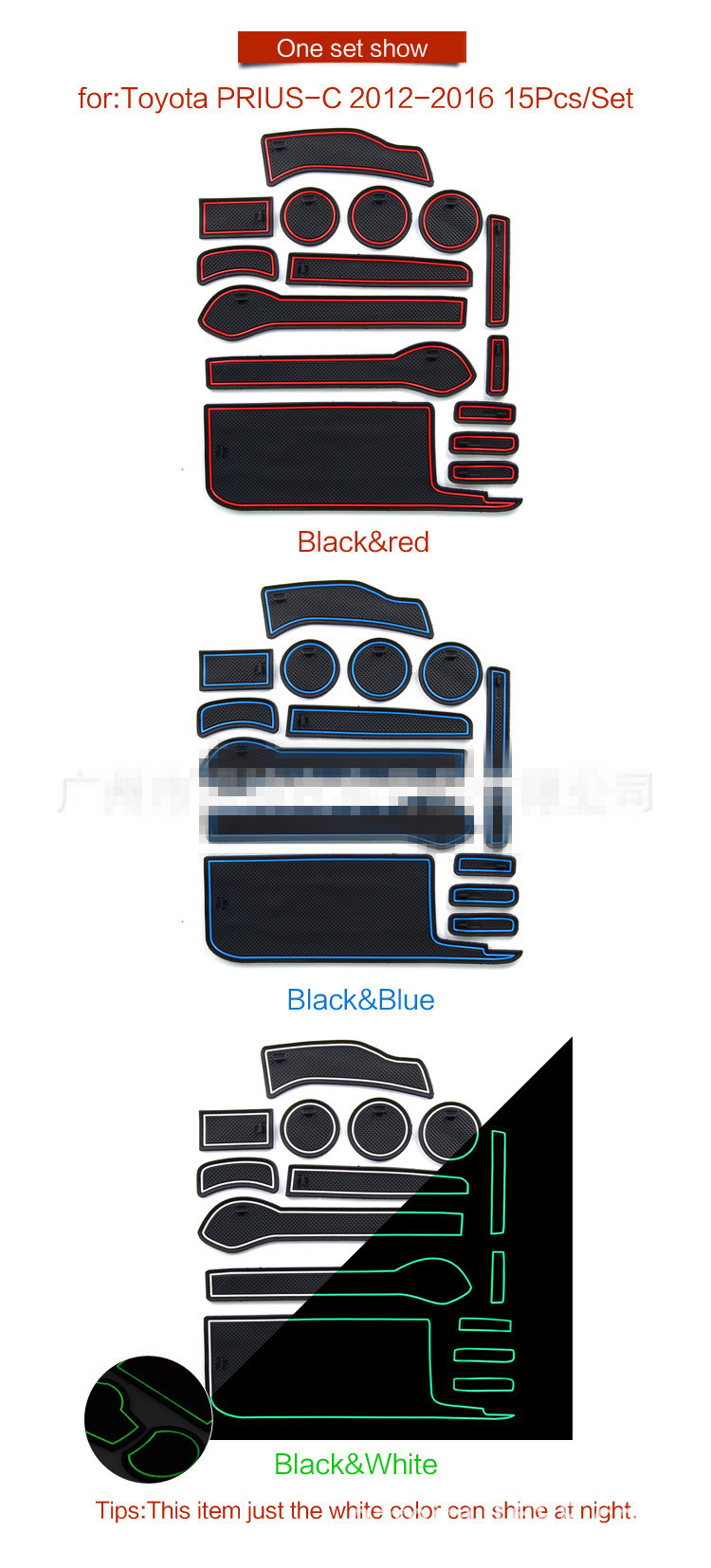 15PCS Cup Holder Door Slot Gate Pad Mats for Toyota PRIUS-C 2012-2016