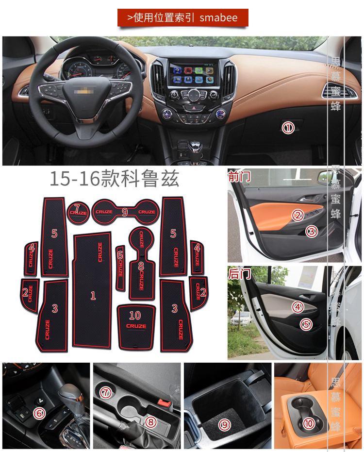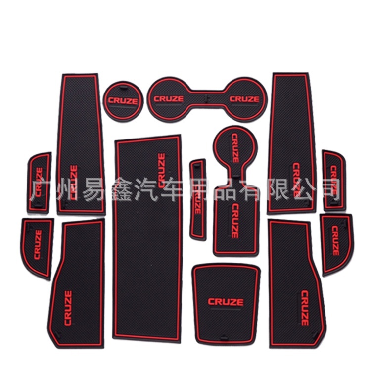 15pcs PVC Black and Red Non-Slip Door Slot Mats Cup Holder Inserts for Chevrolet Cruze 2015-2016