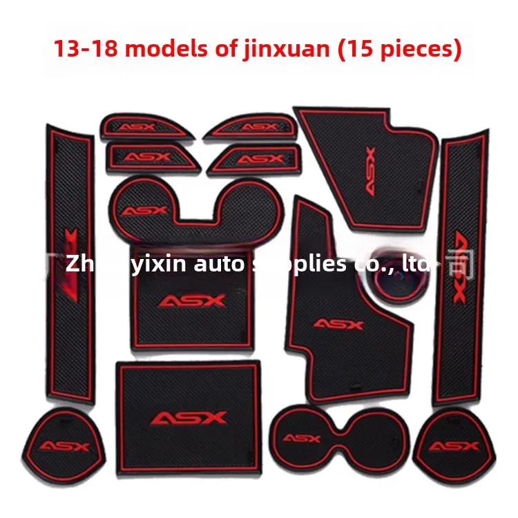 15pcs Red Door Slot Mat Cup Holder Liner Pad for Mitsubishi ASX RVR Outlander Sport 2013-2018