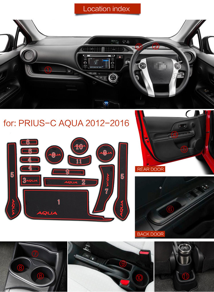 - Direct Fitment: Designed specifically for Toyota AQUA models, ensuring a precise and snug fit in door slots, cup holders, and storage areas.