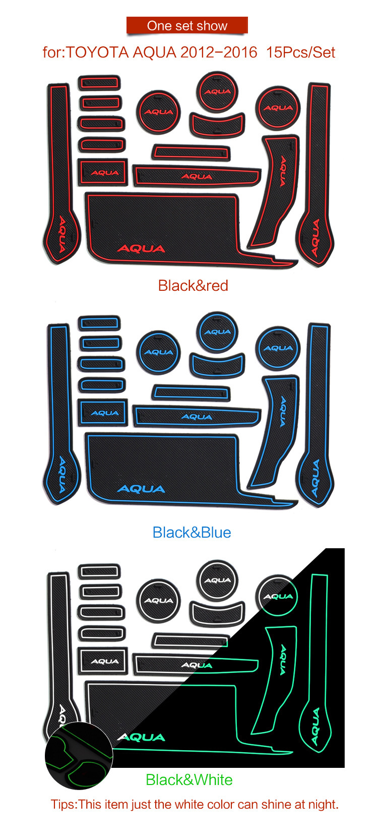 15pcs Red Trim Door Slot Mat Cup Holder Storage Box Pad Anti-Slip Mat for Toyota AQUA