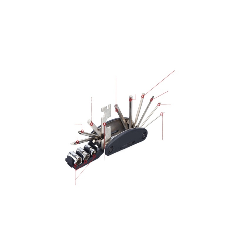 - Performance-Driven Design: This compact 16-in-1 tool includes various hex key sizes, sockets, screwdrivers (flathead & Phillips), and a spoke wrench, as shown, covering essential repair needs.