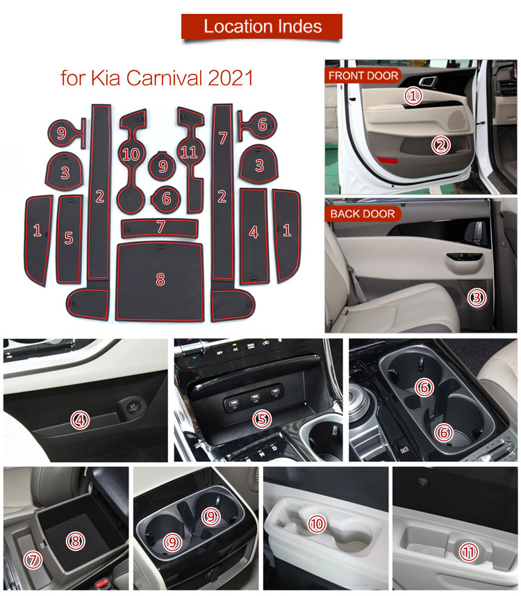 16pcs Anti-Dust Non-Slip Door Slot Mat Center Console Armrest Pad Cup Holder Liner for Kia Carnival KA4 2021