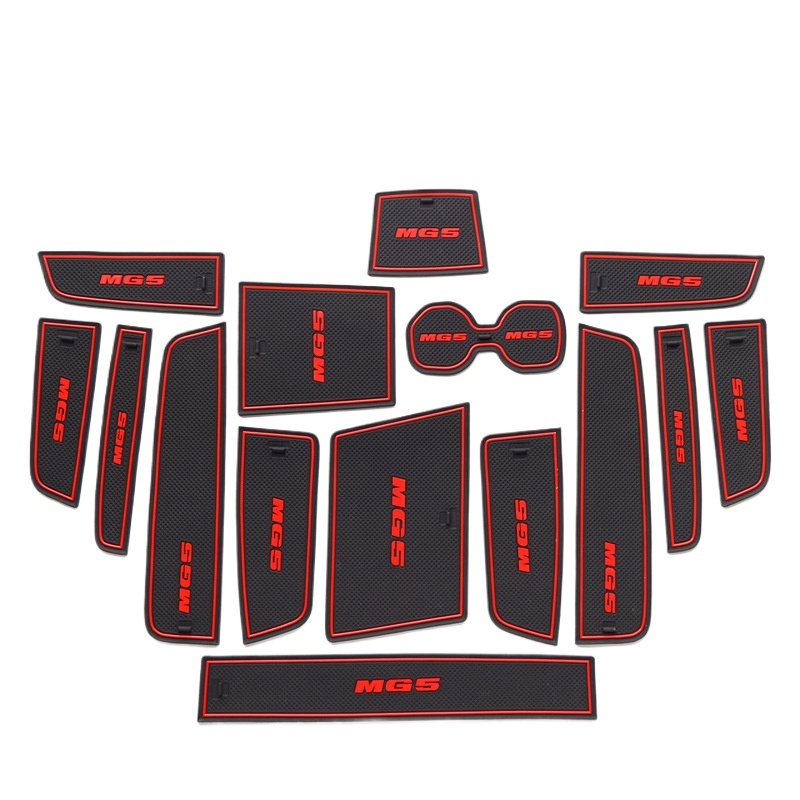 16pcs Anti-Slip Door Slot Mats Cup Holder Liners for 2021 MG5 Interior Modification Red Anti-Dust Pads