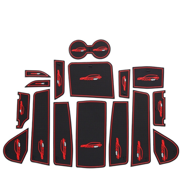 16pcs Anti-Slip Door Slot Mats Cup Holder Pads Interior Storage Groove Liners Trim for Peugeot 4008 2017-2019