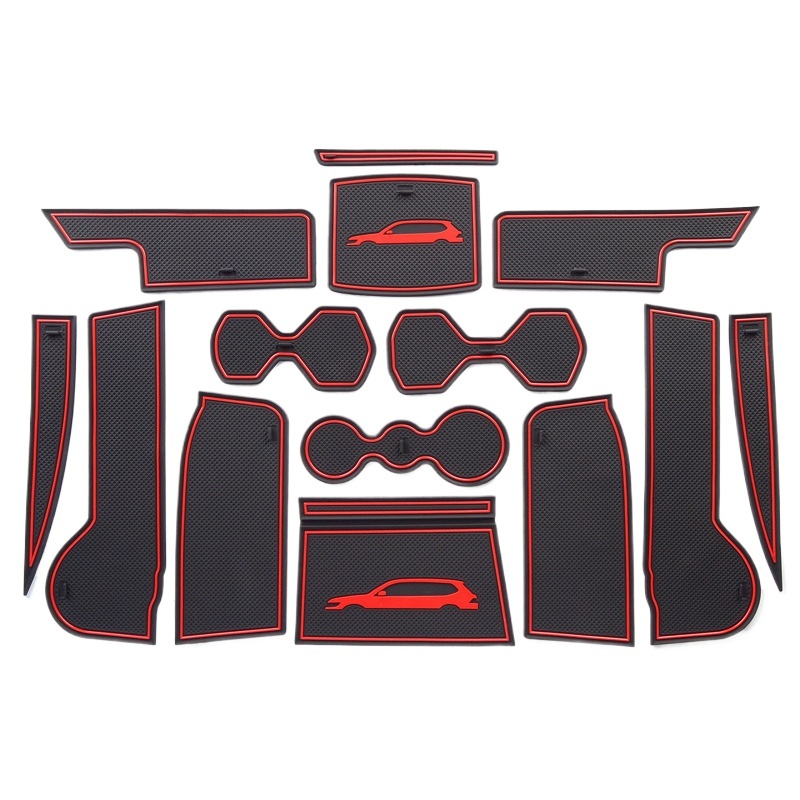 - Complete Package: Includes 17 pieces of anti-slip door slot mats and cup holder lining pads, exactly as pictured in black with red accents. Please verify fitment details before purchasing.