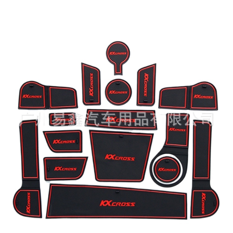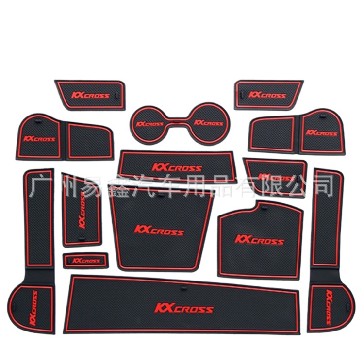 17pcs Black & Red PVC Anti-Slip Door Slot Mat Cup Holder Liner for Kia KX Cross with Armrest Box
