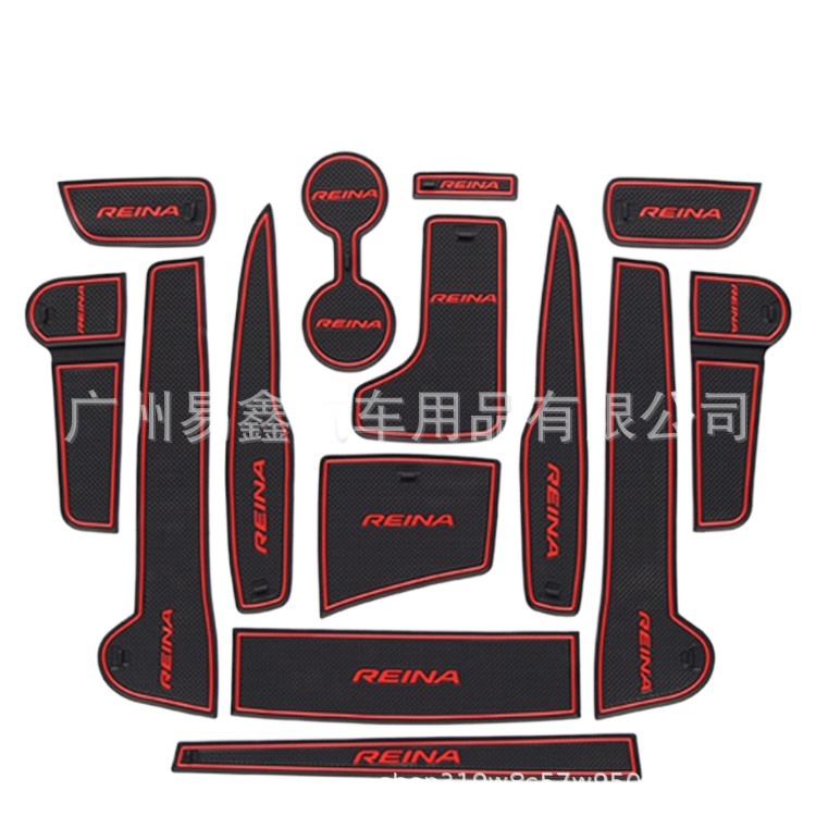 17pcs Black Red Console Door Storage Pocket Cup Holder Mats for Hyundai Reina 2017-2018