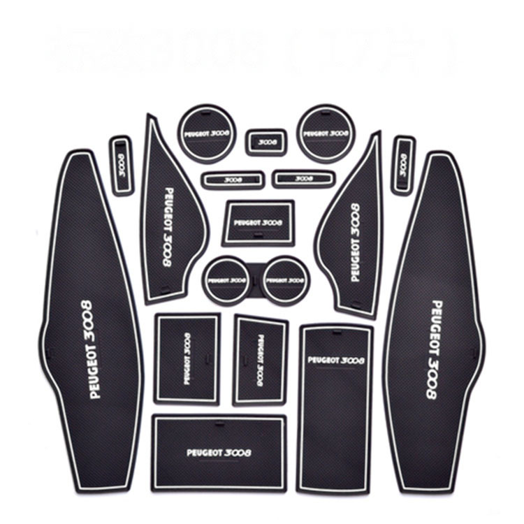 17pcs Front Door Slot Mat Cup Holder Pad Non-Slip Mat Storage Box Pad for Peugeot 3008