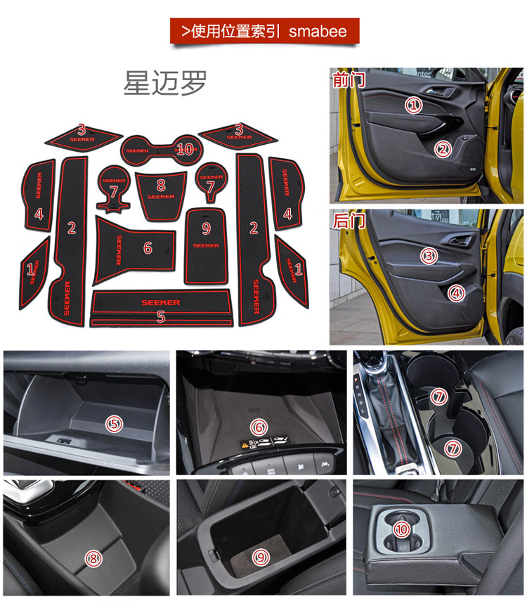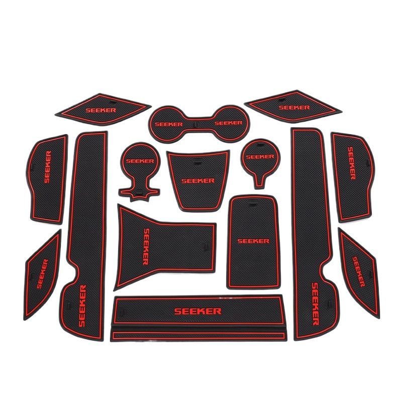 17pcs Red Line Rubber Car Gate Slot Mat Anti-Dust Cup Holder Armrest Box Organizer Pad for Chevrolet Seeker