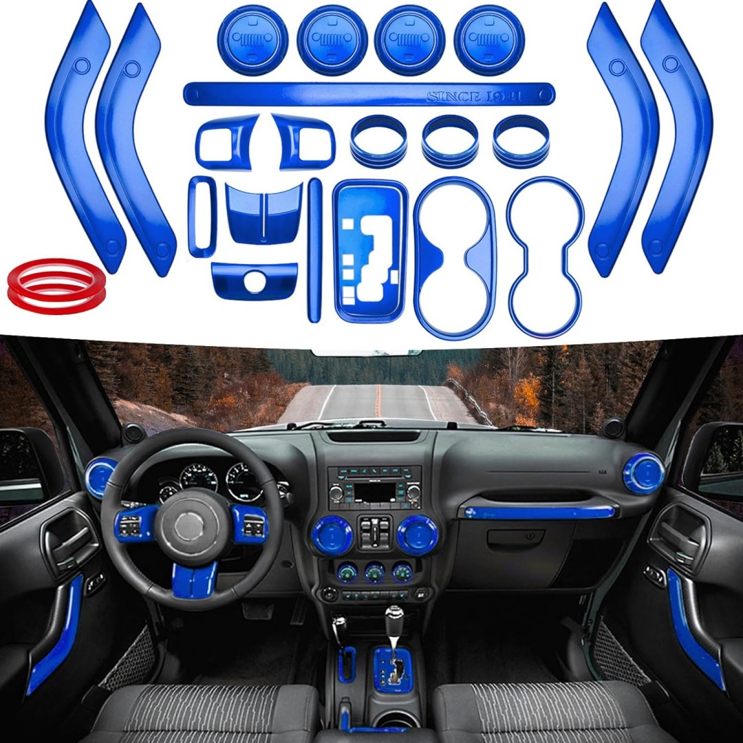 18pcs ABS Red/Blue/Silver Interior Decoration Trim Kit for Jeep Wrangler JK JKU 2011-2017 Interior Trim