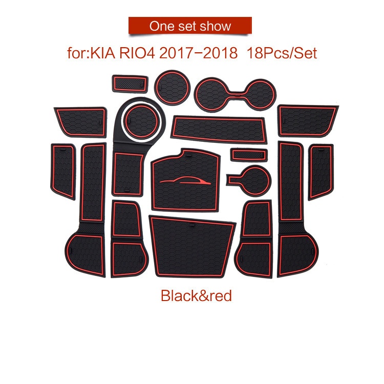 - Direct Fitment: A perfect set of 18 interior door slot and cup holder mats designed specifically for Kia Rio 4 2017-2018 models.