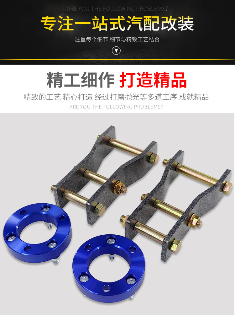 - Heavy-Duty Build: Crafted from high-strength metal for the rear shackles and durable anodized aluminum for the front spacers, with a corrosion-resistant coating to ensure maximum durability and longevity.