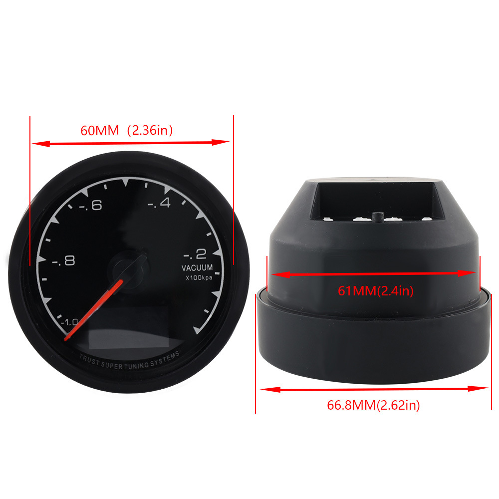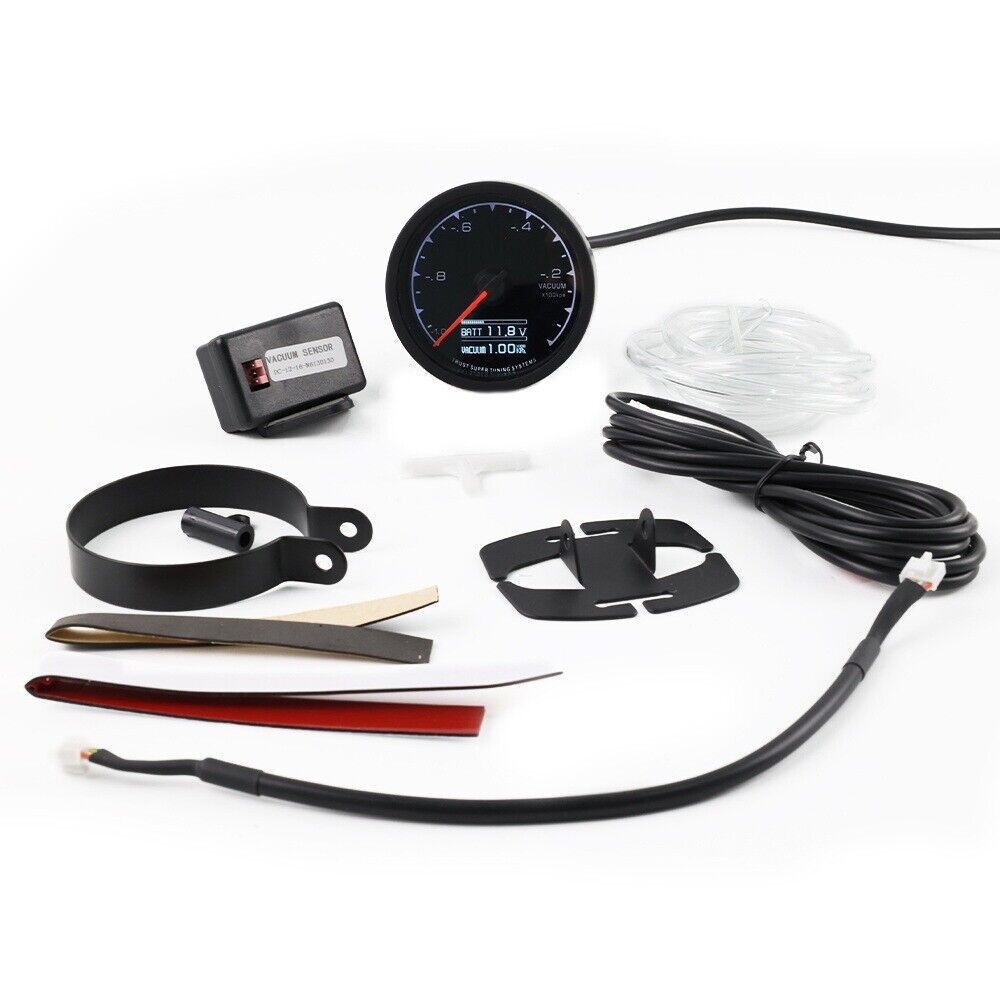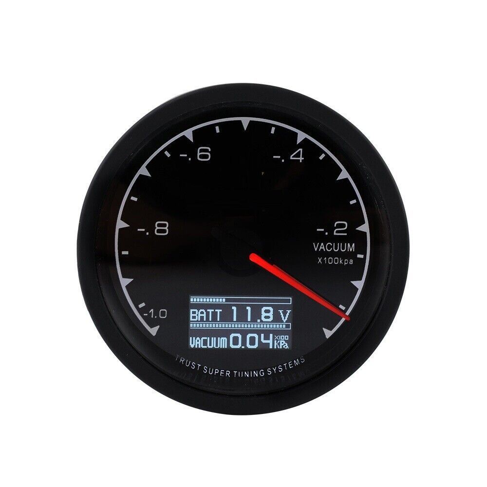 2.5” 60mm Electronic Digital Pointer Vacuum Gauge, Black Face for Universal 12V Car