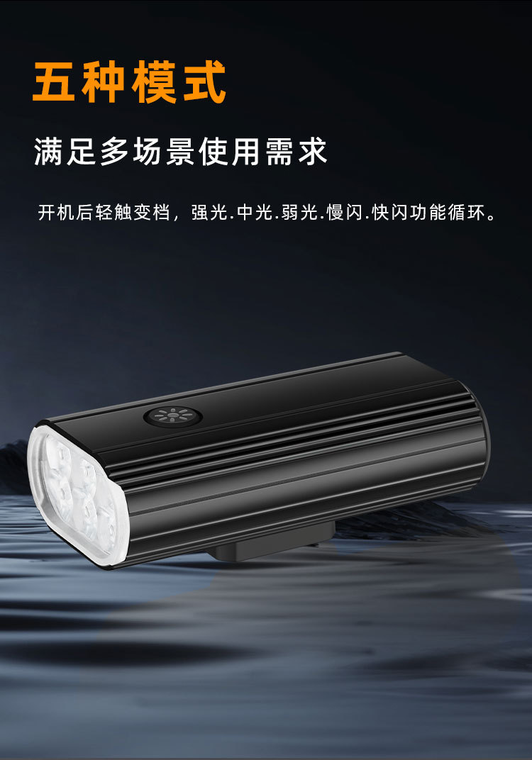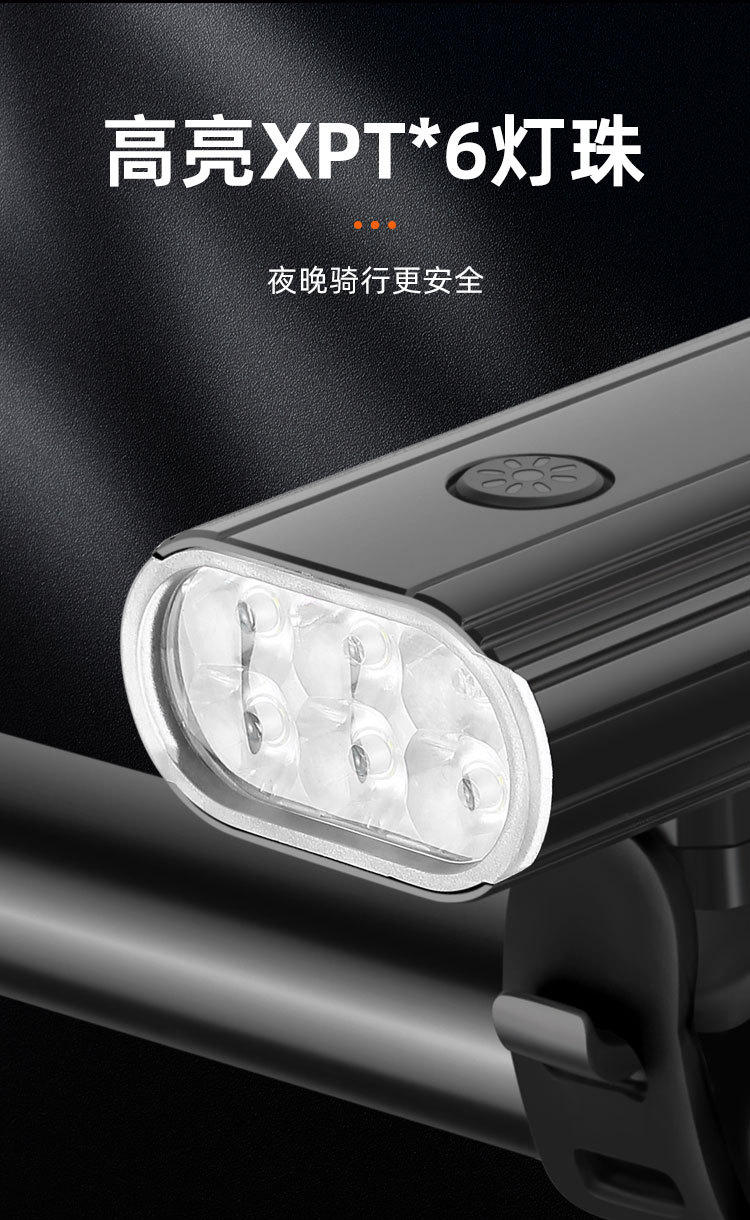 - High Brightness: Equipped with 6*XPT LED beads, delivering 2000 lumens of powerful illumination for clear visibility during night rides.