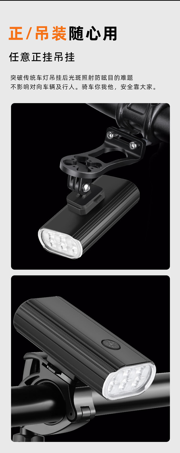 - Multiple Mounting Options: Supports both upright and inverted (hanging) installation methods, allowing for flexible positioning on your bike to suit your riding style. Includes 4800mAh battery for extended use.