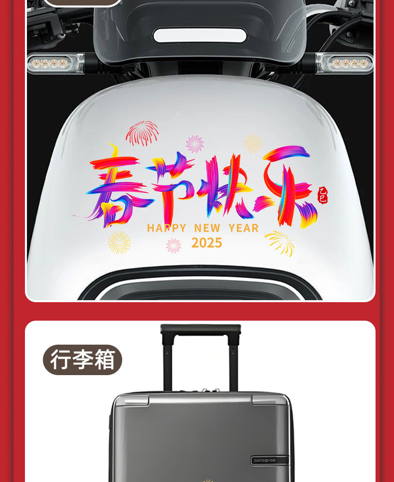 - Performance-Driven Design: Features festive ‘Happy New Year 2025’ and ‘Snake Year Great Fortune’ multi-color designs, enhancing your vehicle’s appearance for the holiday season.
