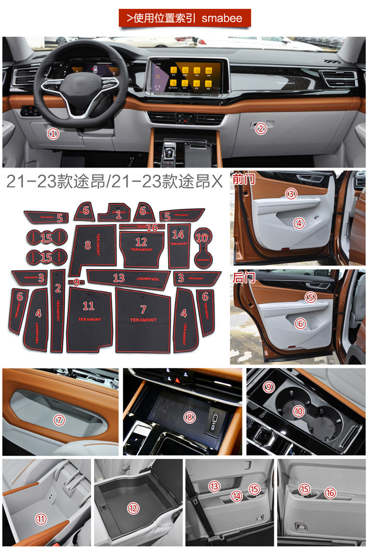 21-23 Volkswagen Teramont X Door Slot Mat Interior Anti-Slip Cup Holder Pad and Armrest Storage Protection Cover
