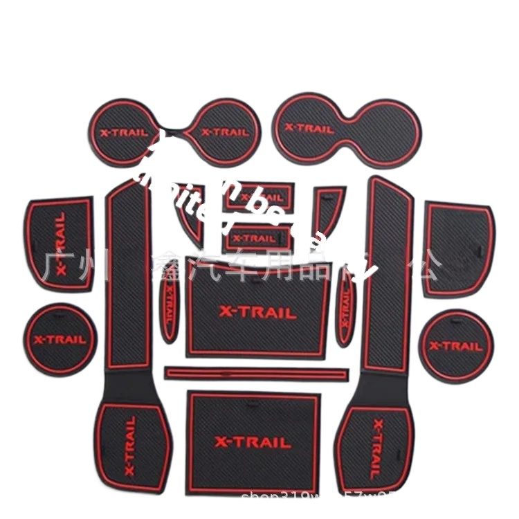21PCS Interior Cup Holder Gate Slot Mat Pad Liner Anti-Slip Red for Nissan X-Trail 2013-2016