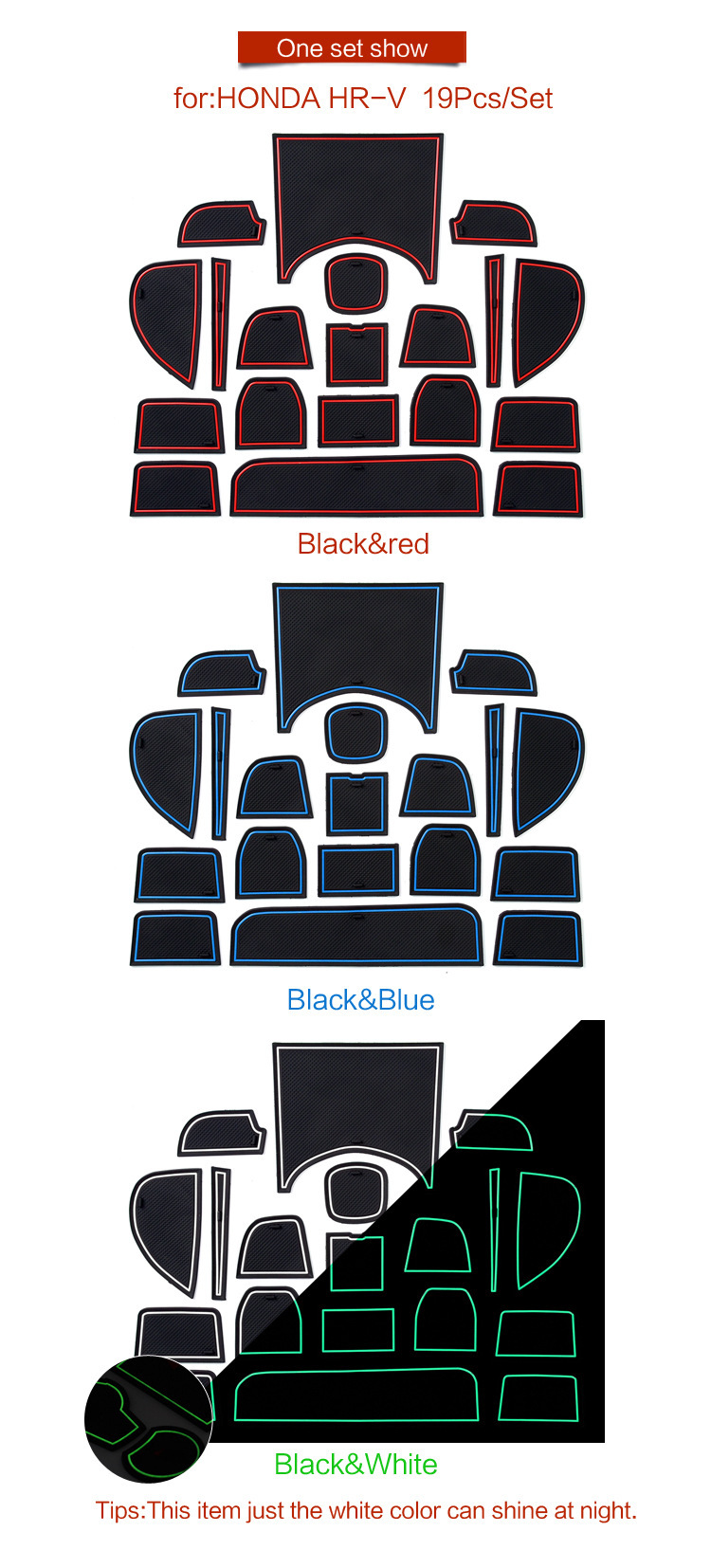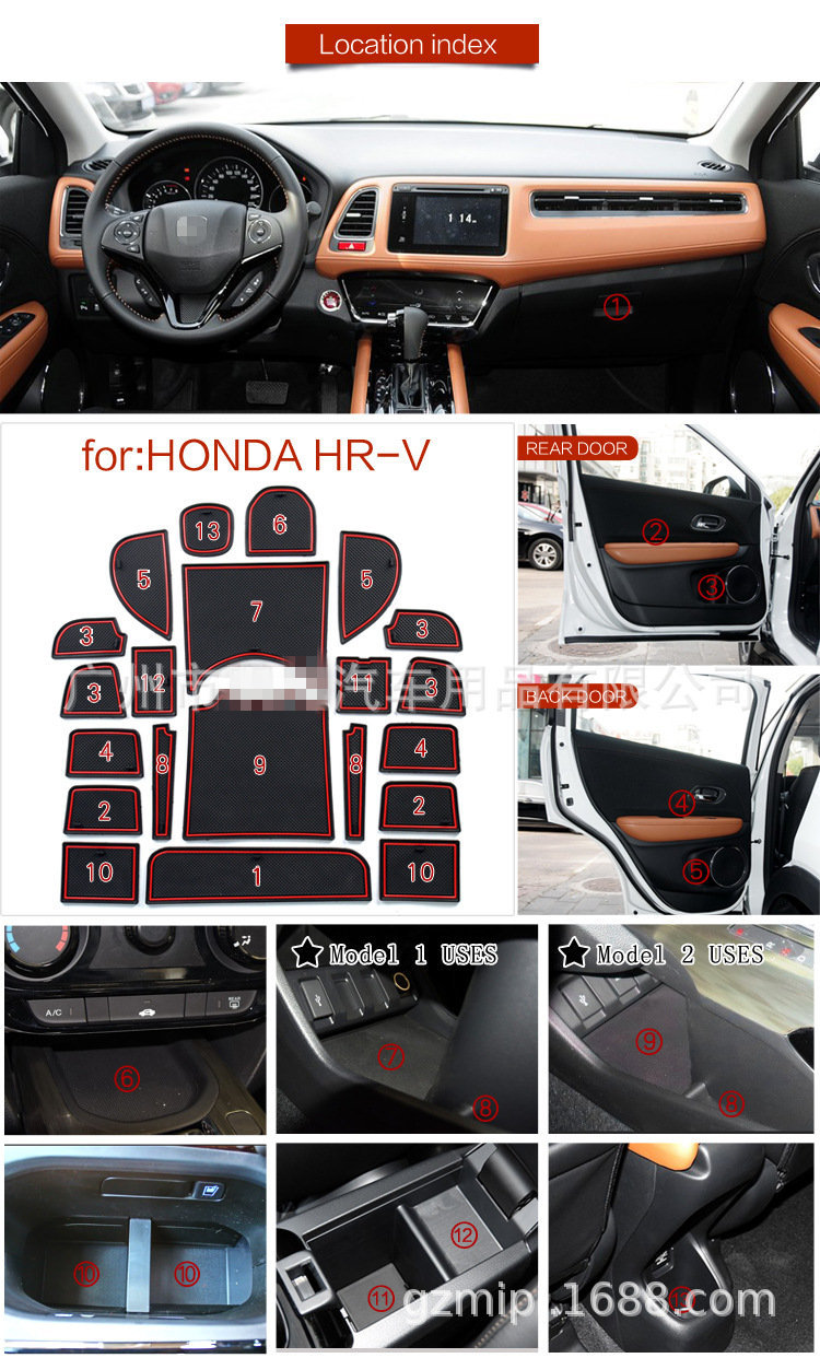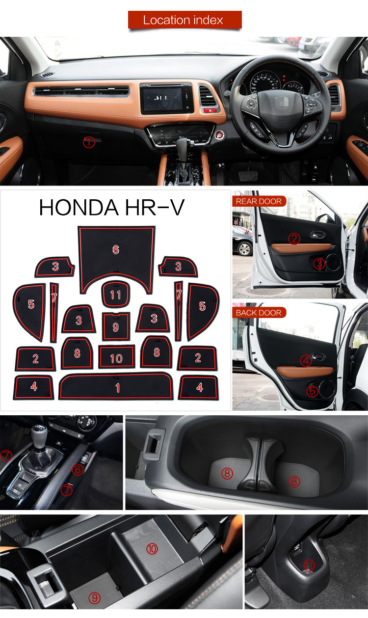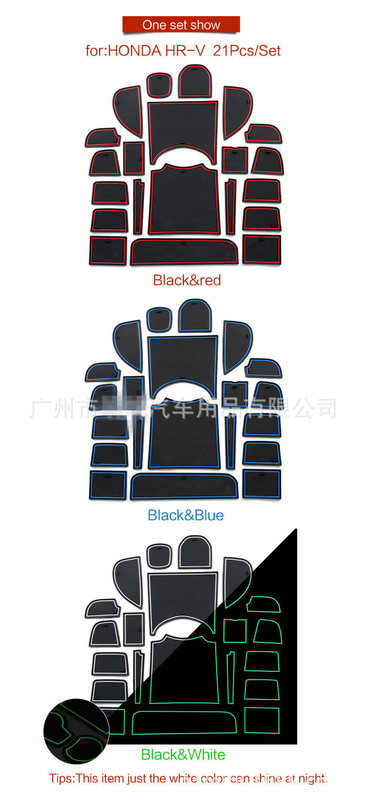 21Pcs Door Slot Mat Car Interior Anti-Slip Pad Storage Mats & Cup Holders for Honda HR-V HRV