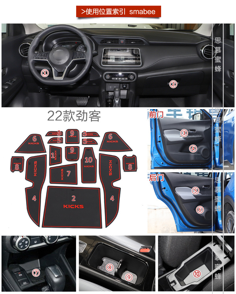 - Direct Fitment: A perfect replacement for the interior door slots, cup holders, and armrest storage of Nissan Kicks 2022-2023 models. Designed for precise compatibility.