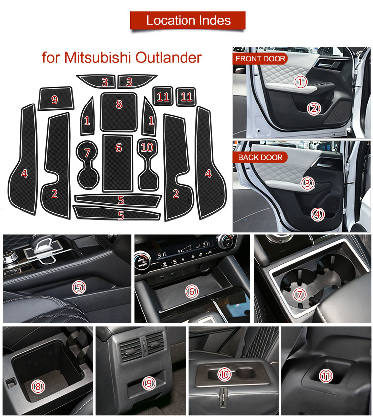 - Direct Fitment: A perfect replacement for 2023 Mitsubishi Outlander models. Designed to precisely fit door slots, cup holders, and center console areas.