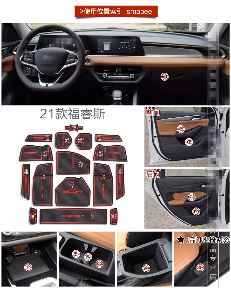 - Direct Fitment: A perfect replacement for the 2021 Ford Escort interior, designed to fit door slots, center console, and cup holders.