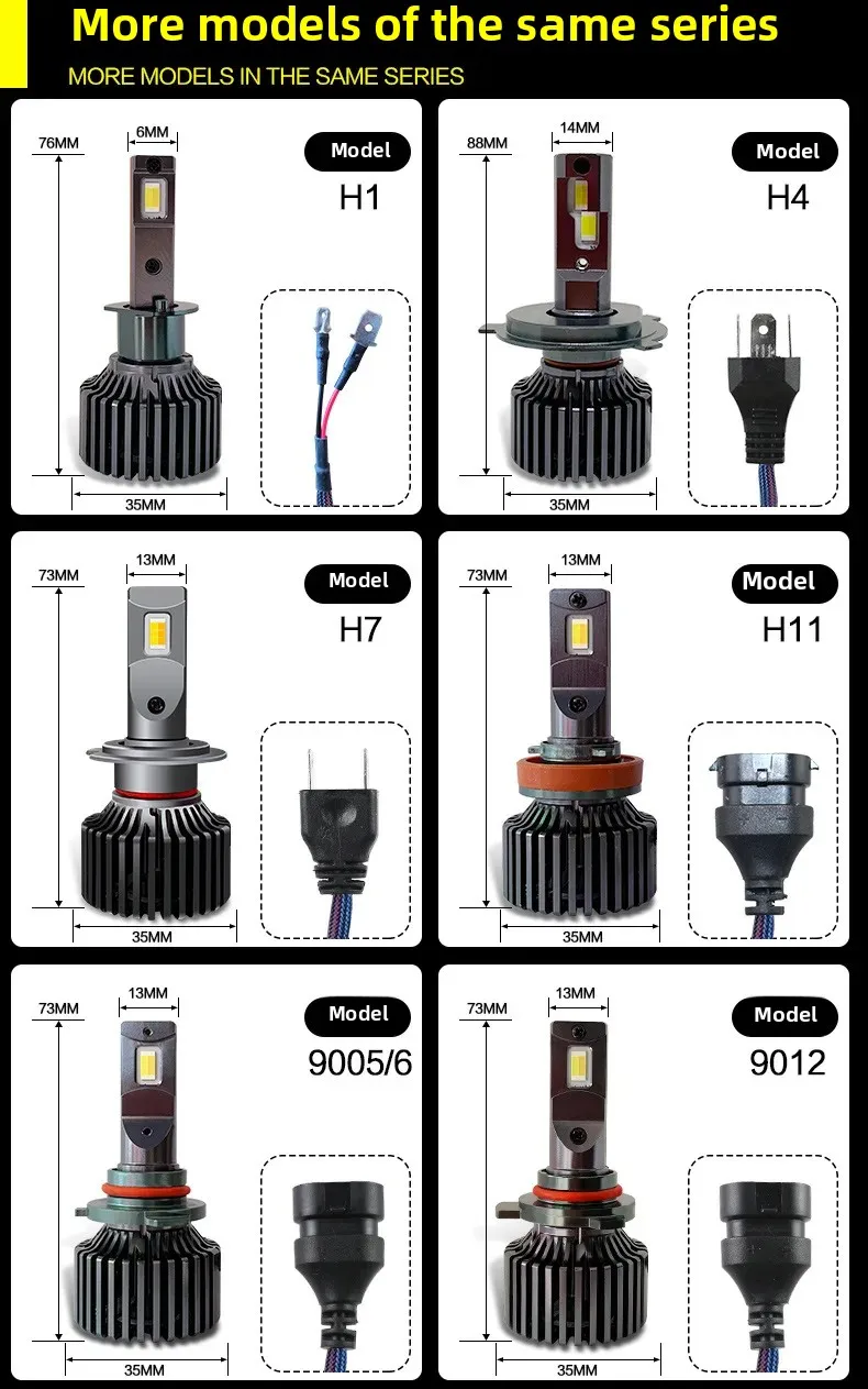 - Direct Fitment: A perfect replacement for various truck models. Compatible with H1, H4, H7, H8/H9/H11, 9005/9006, 9012 socket types.