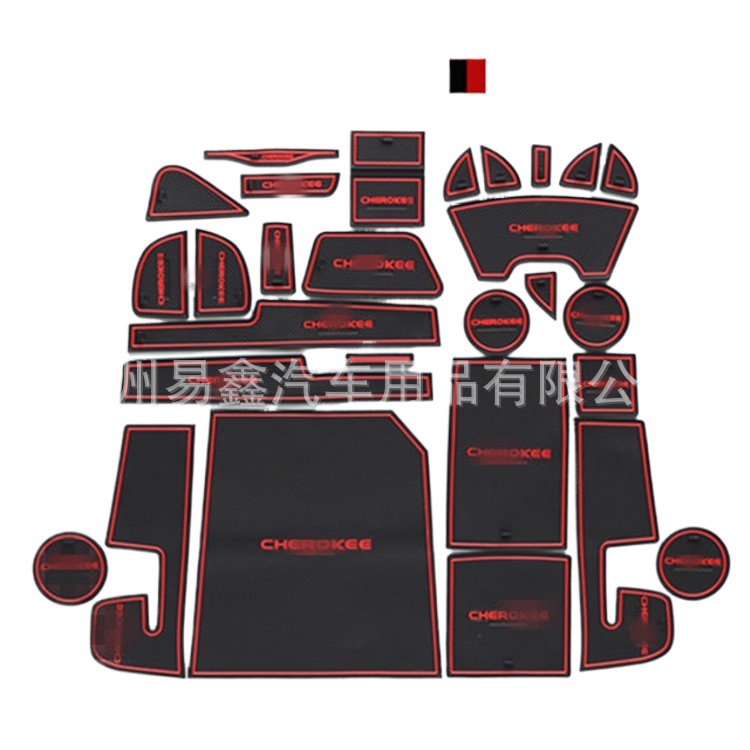 28pcs Black and Red PVC Anti-Slip Door Slot Mats Cup Holder Pads for Jeep Cherokee KL