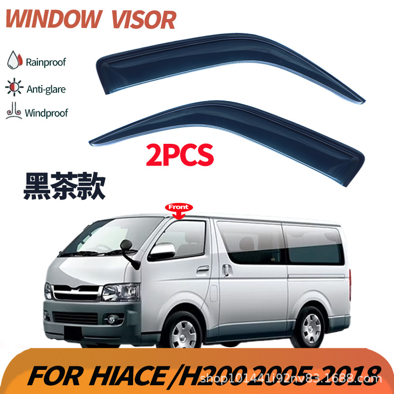 2PCS Front Window Visor Rain Guards Black Acrylic for Toyota Hiace H200 H300 2004-2018