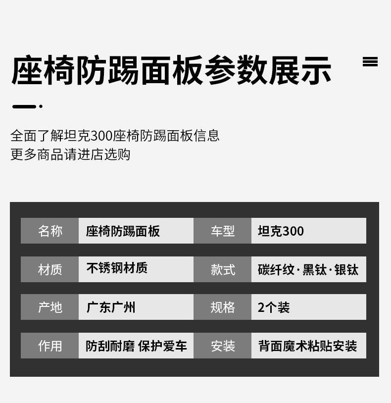 2Pcs Rear Seat Anti-Kick Mat Stainless Steel Carbon Fiber Pattern for WEY Tank 300